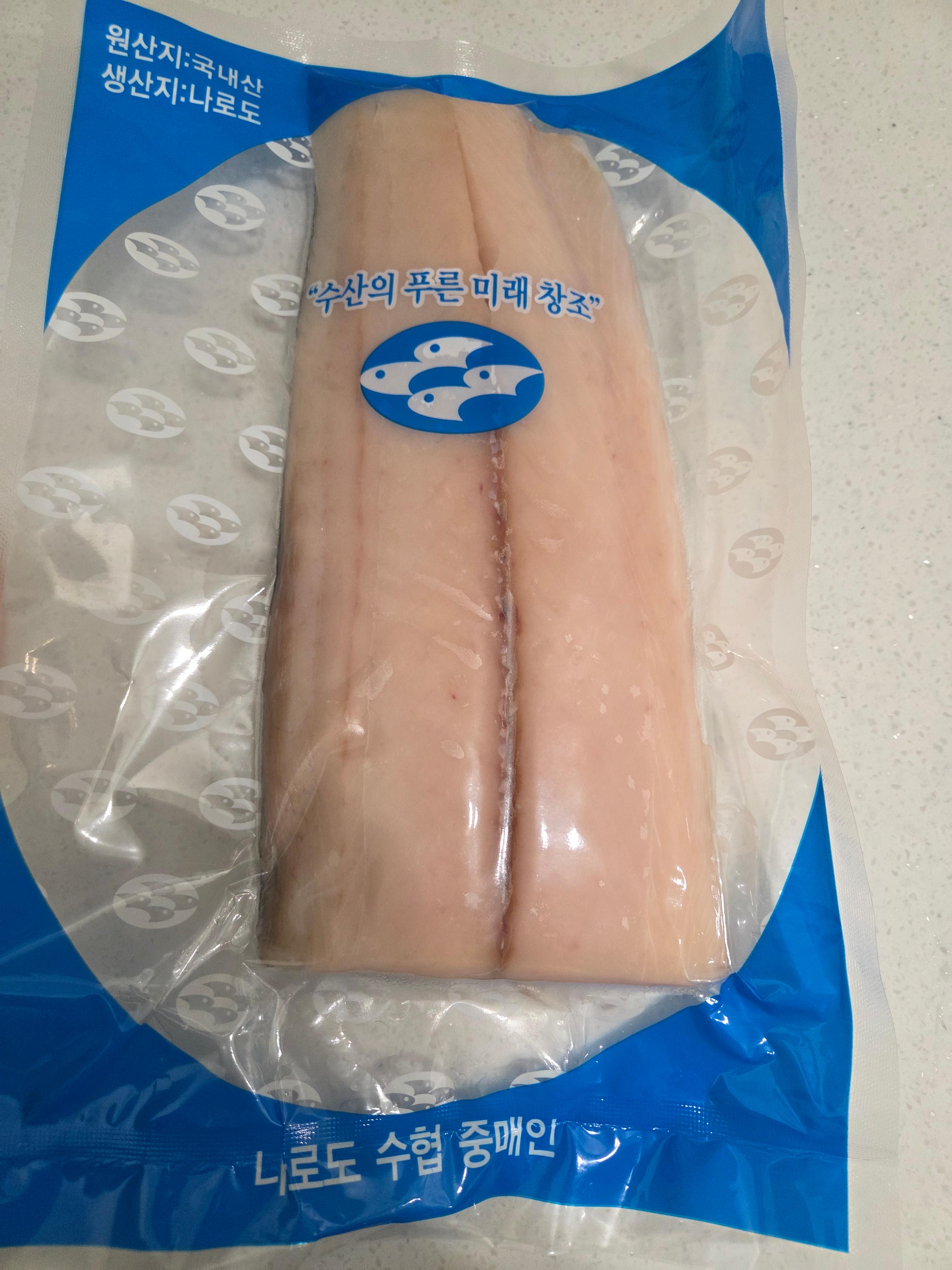 요런 필렛으로 4덩이정도 오는데 회를 정말 잘먹는 다는 사람 기준으로 250g도 먹기 어렵습니다. 충분히 많은 양이니 냉동시켜놨다가 필요할때 해동해 횟감으로 드셔보세요..