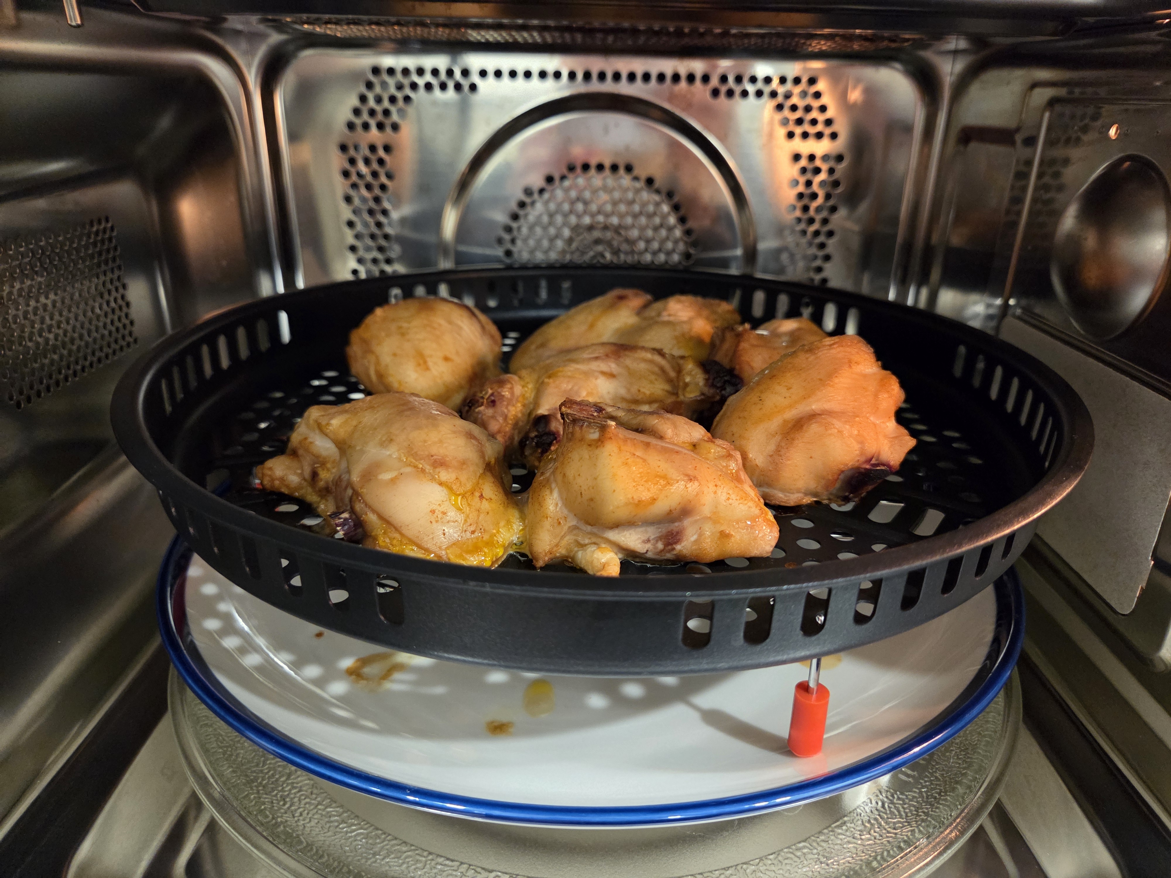 자쟌~ 일단 에어프라이에 180도 25분간 돌렸습니다! 보통 사람들은 15분 하고 뒤집고 15분하고 해서 좀 바삭하게 먹는거 같은데 저는 그런거 모르겠습니다.. 너무 배가 고팠어요 그리고 저는 우리나라 계농업계(?) 를 철저하게 믿는 사람으로써 약간 웰던이 아닌 미디움으로 먹는 걸 좋아합니다 훨씬 부드럽거든요..